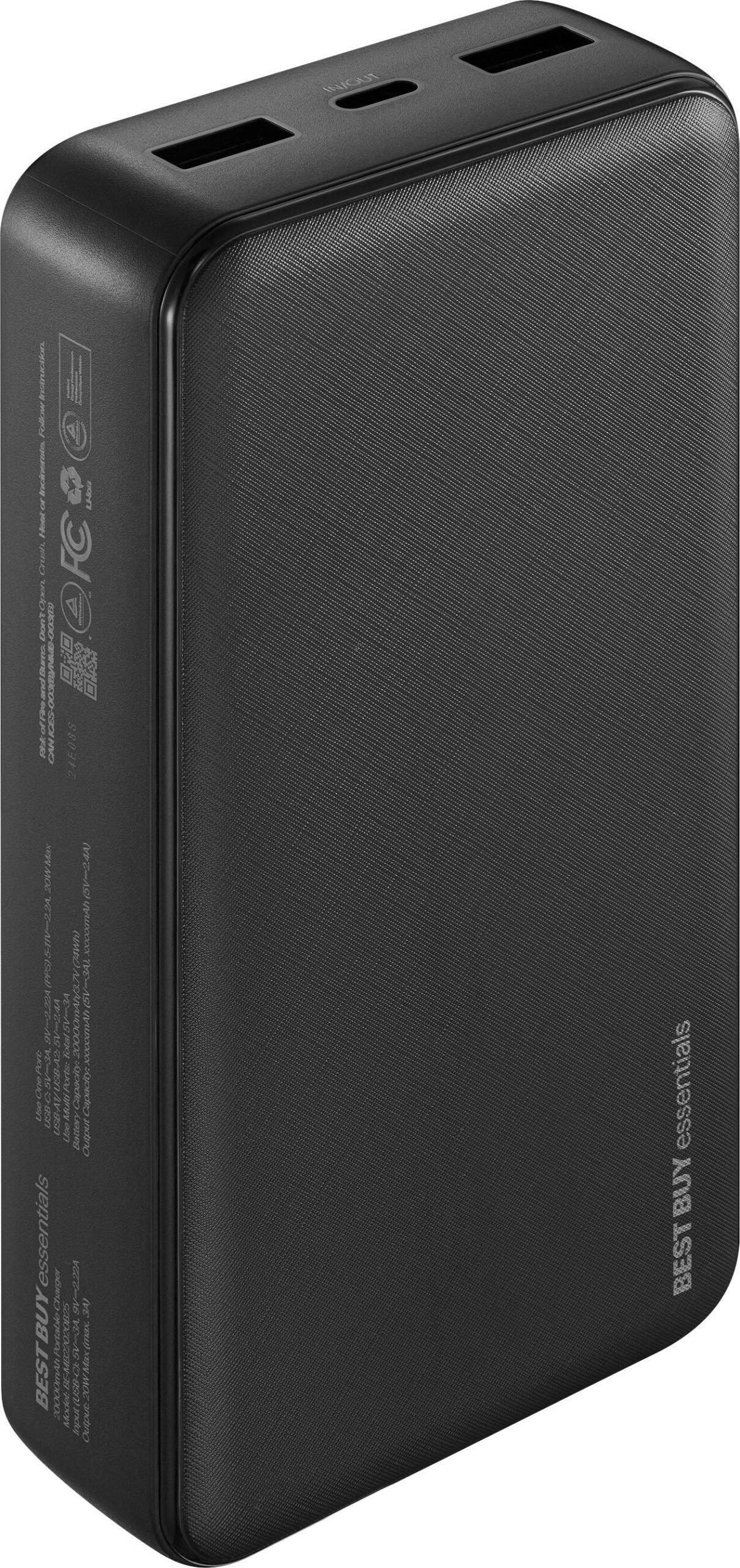 Stay fully charged while on the go with the Best Buy Essentials 20W 20,000mAh Portable Charge for Most Smartphones, Tablets and USB Devices. The power bank features a 20W USB-C port and two USB ports (12W total) to charge multiple devices simultaneously. Track the charging status and remaining battery with the LED indicators on the side. The power bank’s 20,000mAh capacity is at the top end of the spectrum for portable chargers, allowing maximum device charges before needing its own recharge. And it’s backed by Best Buy, so can trust it will keep your devices charged away from home.